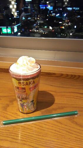 プラザ館4Fは夜11時まで開いているので、席の確保に時間かかりましたが、カップ20円値引きで季節限定バージョンを。 タンブラーはトールサイズ。ホイップつけたら蓋が閉まらなくなるけど追加していいか聞かれましたけど、店内なので問題ないです。
