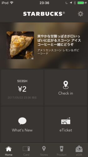 モバイルのスタバカードはおサイフケータイのついたAndroidなAQUOS PHONEを使っていますが、なぜかスタバアプリのスクショが取れないので、iPod touchにもインストールしてみました。 すると、Androidのスマホの型番が表記されちゃいました。残高2円也。