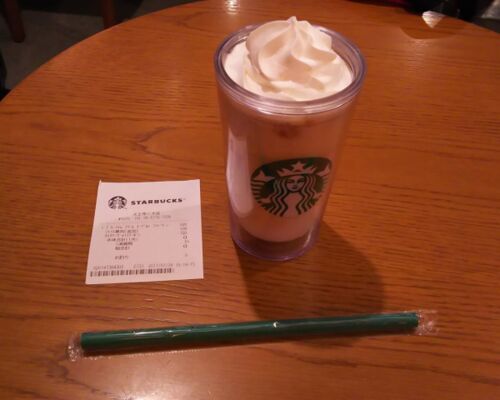一昨日の長いレシートを使って、一番単価の高いドリンクをGETしました。 キーライム クリーム ヨーグルト フラペチーノにシトラス果肉追加を0円で。カスタマーヴォイスクーポンっていうんですね。それでレシートにCVクーポンと表記されていたわけです。 果肉…