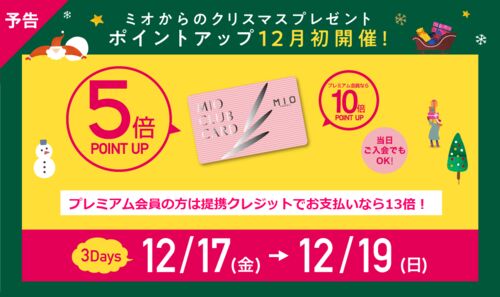 今年も超ローカルネタ、天王寺ミオクラブの5倍ポイントアップキャンペーンネタ投下しまっせ。なお、この記事はその都度追記・編集していくのでよろしくです。