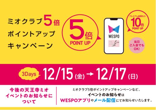 昨日、天王寺ミオからのキャンペーンのお知らせメールが届いていたのに気づいたのがついさっき。本日、郵便受けにミオのDMが届いてました。 超ローカルネタ、今年もやりまっせ。 この記事もその都度追記・編集していくのでよろしくです。