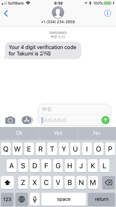 そしたら、4桁の認証コードが来ました。334のエリアコードってどこや?って調べたらアラバマ州ですね。完全にアメリカですやん。