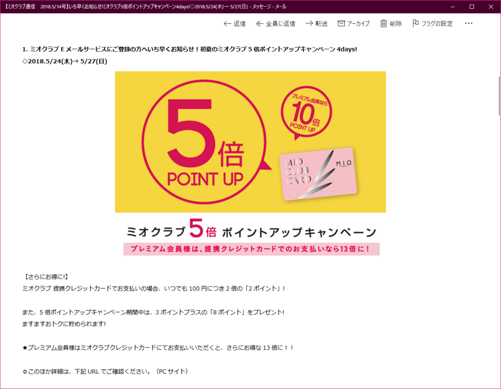 ちなみに、今度のミオの5倍ポイントアップは予想通り24日からですね。