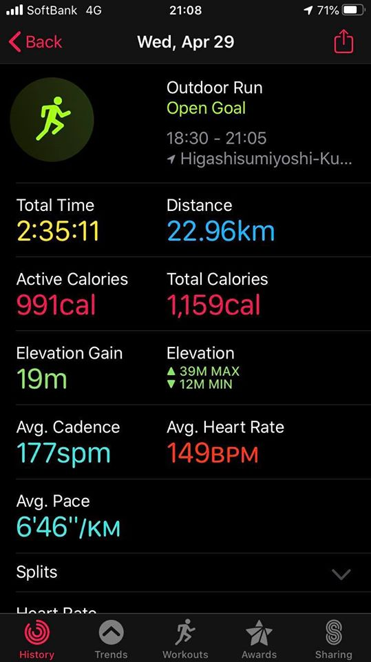 ていうか、コロナのせいなのか、普段運動しない「にわか」な人たちがどっと押し寄せてマジで走りにくい状況が続いています。4人以上横に並んでチンタラ歩くグループとかもうね。最大5人が等間隔で道幅いっぱい横に並んで歩いていたのも遭遇済み。いやマジで邪魔やから歩くんなら歩道で歩いてくれませんかね?