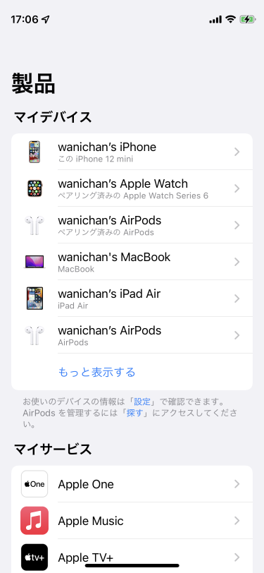 サポートアプリを開いてみたらこんな感じ。マイデバイスリストにペアリング済みと前のんが存在してます。