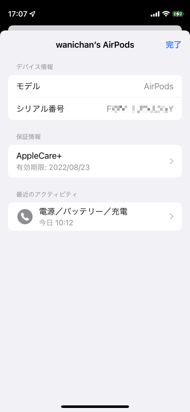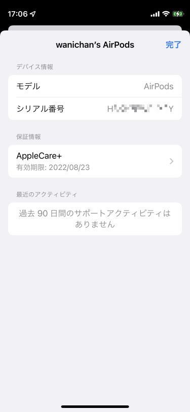 交換してもらったAirPodsにAppleCare+が引き継がれました。