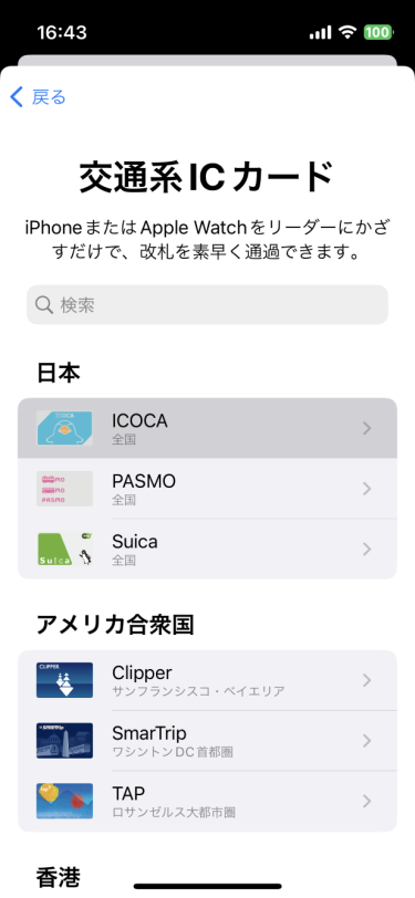なんか最近JRの改札口でiPhoneかざしていかにもモバイルICOCAの乗客が目立ってきて、あれれれ??? と思ってました。JR駅構内でもAndroidだけじゃなくてApple Payも記述されたステッカーが改札機とかに貼られていました。そんなわけで今日、Apple Wallet見たら交通系ICカードにICOCAがリストされていたのを確認。