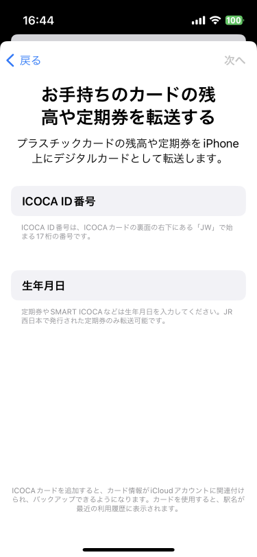 ついでにICOCAアプリをiPhoneにインストールし、アプリ上でJ-WESTカードを登録してICOCAチャージとか定期券購入とかできるように設定しようとしたときにはじめてWESTER IDが統合できるようになったことを知りました。